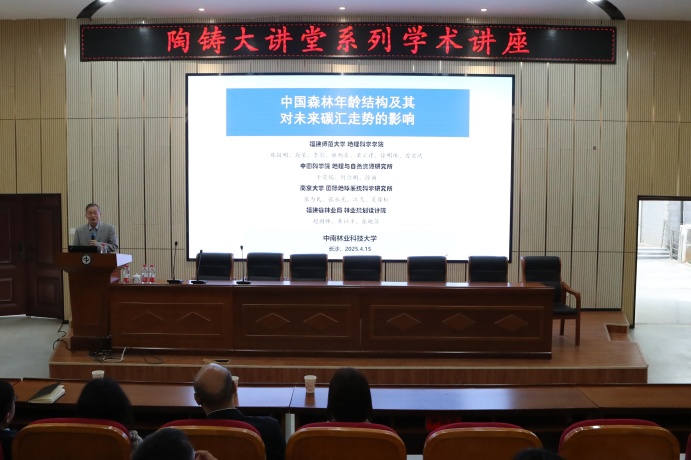 (文/人事处、科学研究院)4月15日上午,应学校邀请,加拿大皇家科学院院士、加拿大多伦多大学陈镜明教授与柳竞先教授来我校进行访学交流。在林学院报告厅“陶铸大讲堂”先后作题为《中国森林年龄结构及其对未来碳汇走势的影响》和《亚热带森林碳水循环和耦合的研究》的学术报告。报告会由学校副校长尹双凤主持,来自林学院、生态环境学院、前沿交叉学科学院、计算机与数学学院等300余名师生参加了报告会。